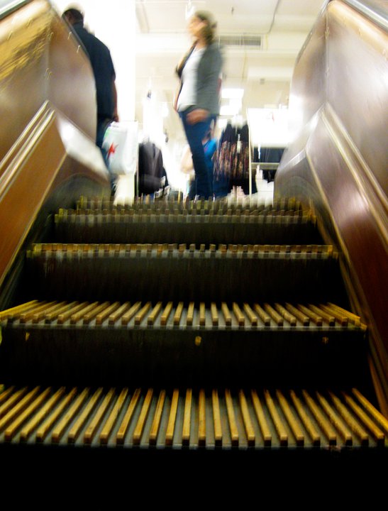 A close-up of the Macy’s wooden escalators. The store has been there since 1902, but I’m not sure if the escalators also date from that time. Maybe the 1920s. Interesting fact: in July a kid got his finger ripped off by one of these escalators.